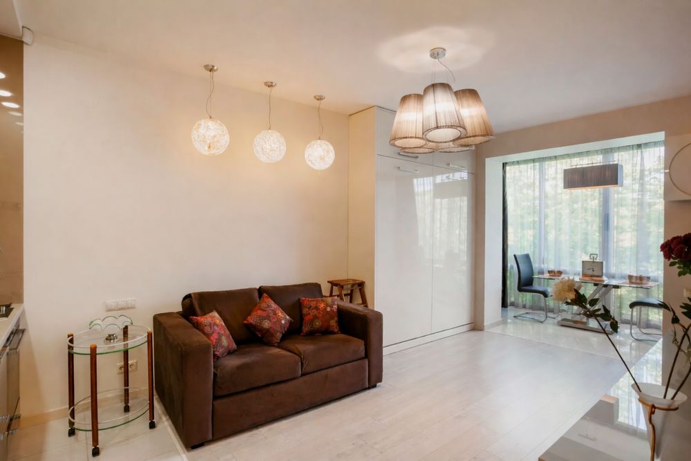 З вікон квартири відкривається чудовий краєвид на парк Вічної Слави, який розташований прямо через дорогу — ідеальне місце для прогулянок та відпочинку.