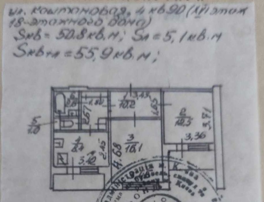 Загальна площа 55.9 кв.м,